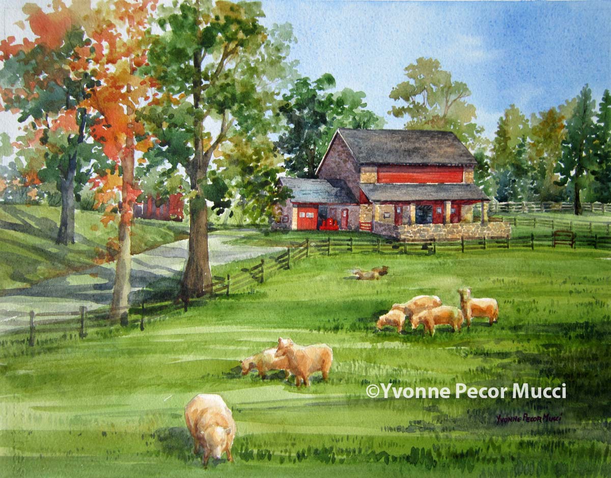 Coverdale Farm Preserve, located in Greenville Delaware, was my painting location site for day one of the Plein Air Brandywine Valley competition. Great spot, full of animals and a gorgeous field stone barn. So many subject choices here, but I loved the sheep leading up to the main barn. Perfect sunny day resulted in this painting.