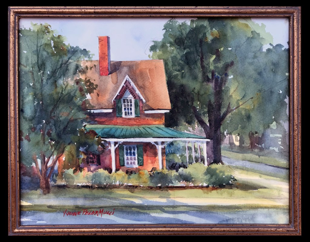 “Webb House” watercolor by Yvonne Pecor Mucci (Framed to 16 x 20, Sold)