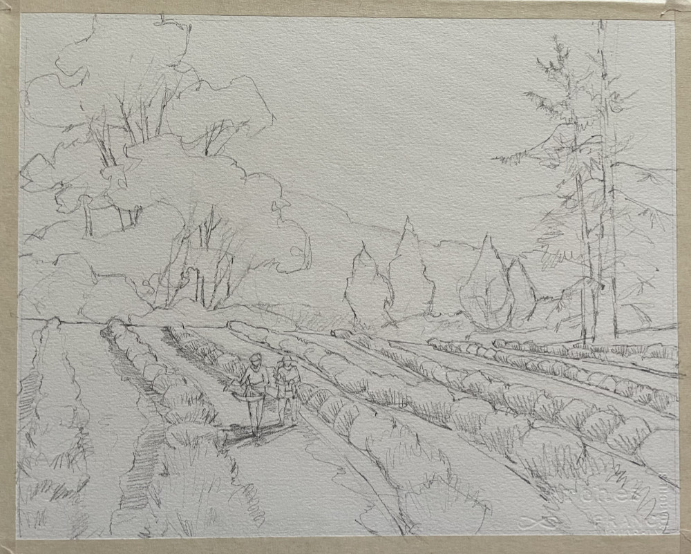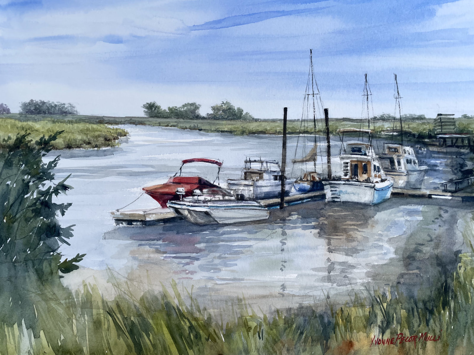 “Cohansey Time” watercolor by Yvonne Mucci 11×14 availableInitial graphite sketch.