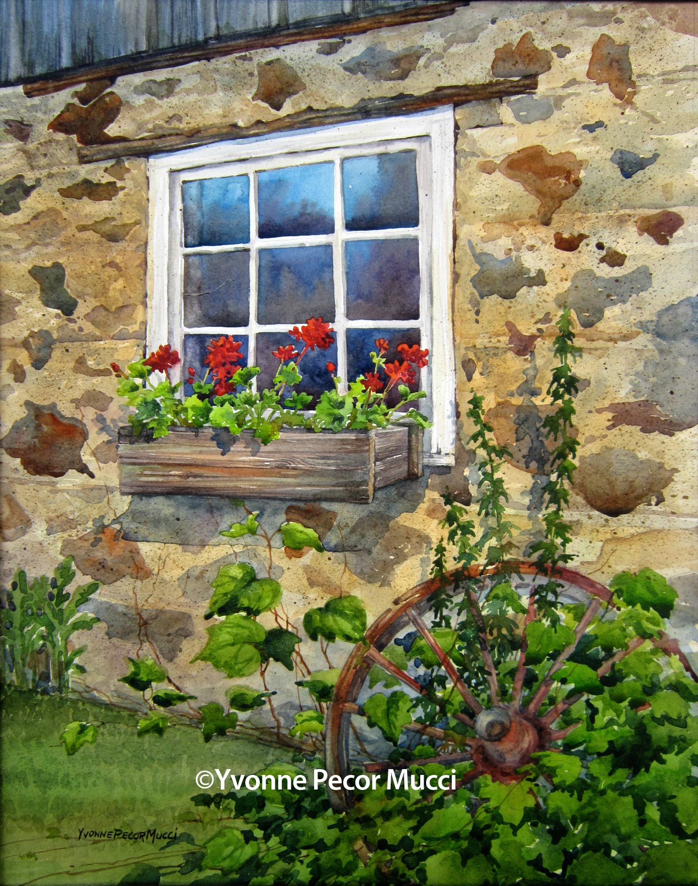Frame size is 16 x 20, mat opening is 11.5 x 15.5. It is painted on 140 pound Arches cold press paper. Inquiries to mucciyvonne@yahoo.com